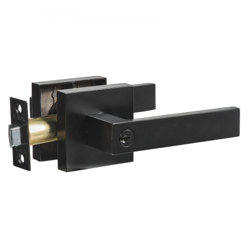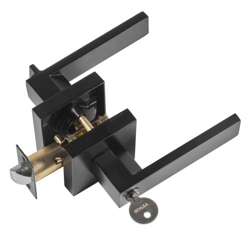 VEVOR Entry Lever Door Handle, 1 PC Black Entry Knob, Lock and Key Locking Lever Set, Contemporary Square Door Lever, Reversible for Right and Left Sided Doors, 45° Rotation to Open, for Front Door