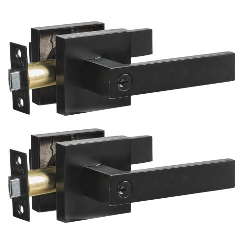 VEVOR Entry Lever Door Handle, 2 PCS Black Entry Knob, Lock and Key Locking Lever Set, Contemporary Square Door Lever, Reversible for Right and Left Sided Doors, 45° Rotation to Open, for Front Door