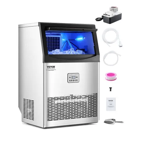 VEVOR Undercounter Built-in Ice Maker, 50 Lbs/Day Under Counter Ice Maker Machine with Drain Pump Reversible Door Stainless Steel, Freestanding Ice Maker for Commercial Home Kitchen