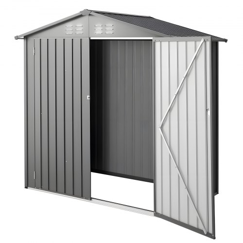 VEVOR 6 x 4 FT Metal Garden Shed, Outdoor Storage Shed with Lockable Doors & 4 Louver Vents, Peak Roof Metal Sheds Outdoors Storage, Storaged Sheds Clearance for Backyard, Garden, Patio, Bike, Gray