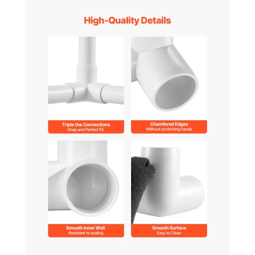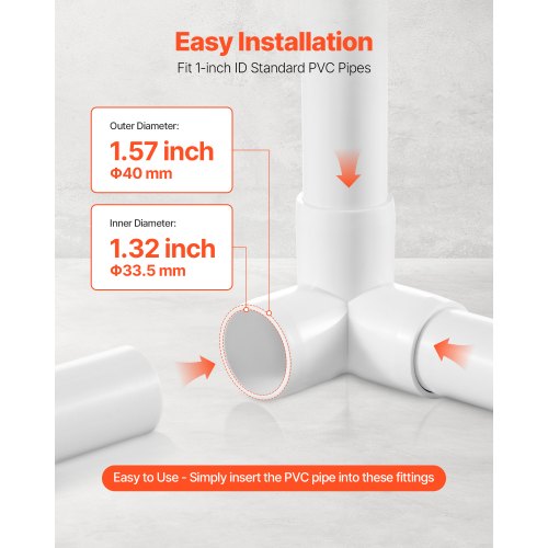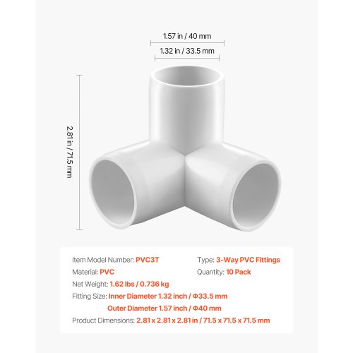 VEVOR 3-Way PVC Fittings, 1-inch PVC Pipe Joints Elbow Connector, 10-Pack Furniture Grade PVC Tee Fittings for DIY Storage Rack, Animal Cage, Pool or Garden Support Frame, Impact & Weather-Resistant