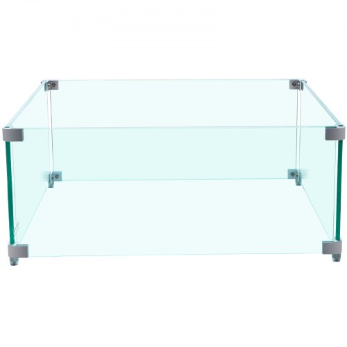 VEVOR Gas Fire Pit Wind Guard for Square Fire Table, 21 x 21 x 7.5 inch Clear Tempered Wind Guard for Firepits, 0.31 inch Thick Square Glass Shield, Glass Panel with Hard Corner Bracket & Feet