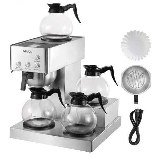 VEVOR 12 Cups Commercial Drip Coffee Maker, Coffee Maker Machine with 3 Glass Carafes and 3 Warmer Plates, Stainless Steel Pour Over Coffee Brewer for Restaurant, Office, Cafe