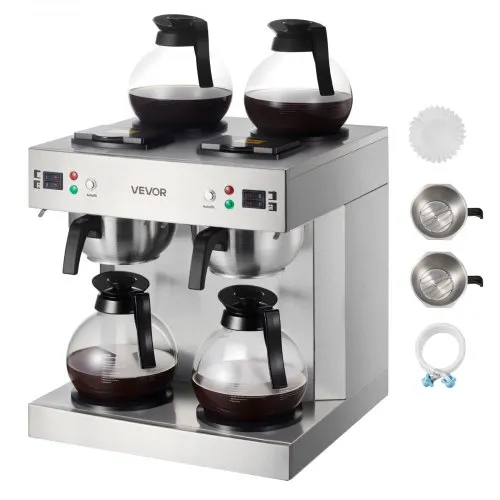 VEVOR Commercial Drip Coffee Maker, 24 Cups Coffee-Maker Machine with 4 Glass Carafes and 4 Decanter Warmer Plates, Stainless Steel Dual-Head Coffee Brewer, for Restaurant, Office, Coffee Shop & Home