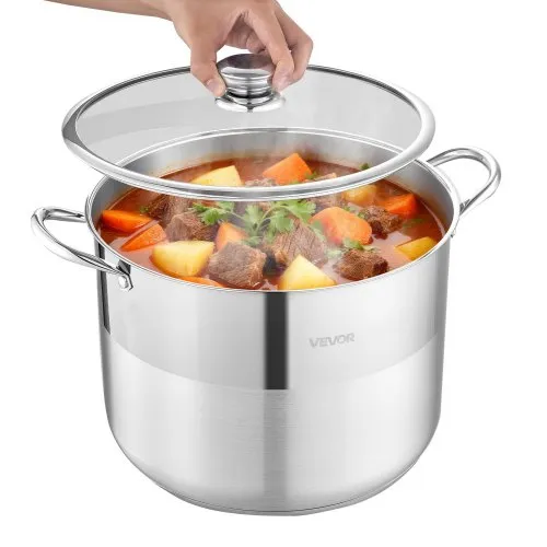 VEVOR Stainless Steel Stock Pot, 21-Quart Stainless Steel Stockpot with Glass Lid, PFOA-Free, PFAS-Free, Compatible with Gas Stoves, Induction Cooktops, Electric Stoves, for Soups, Stews, and Pasta