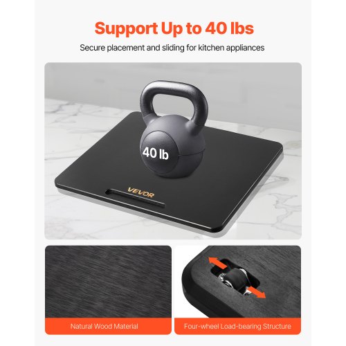 VEVOR Appliance Slider, Large 16 x 12-inch, Rolling Sliding Tray with Silent Rubber Wheels & Hollow Handle, Easy to Clean, Appliance Rolling Tray for Coffee Maker, Kitchen Countertop, Black