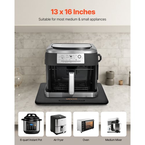VEVOR Appliance Slider, Medium 13 x 16-inch, Rolling Sliding Tray with Silent Rubber Wheels & Hollow Handle, Easy to Clean, Appliance Rolling Tray for Coffee Maker, Kitchen Countertop, Black
