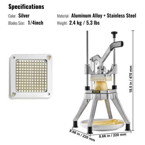 VEVOR Commercial Vegetable Fruit Chopper 1/4" Blade Heavy Duty Professional Food Dicer Kattex French Fry Cutter Onion Slicer Stainless Steel for Tomato Peppers Potato Mushroom