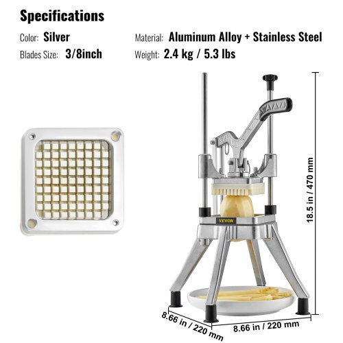 VEVOR Commercial Vegetable Fruit Chopper 1/2″ Blade Heavy Duty Professional Food Dicer Kattex French Fry Cutter Onion Slicer Stainless Steel for Tomato Peppers Potato Mushroom, Sliver