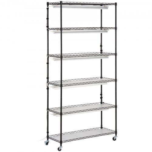 VEVOR DIY Plant Shelf with Grow Lights, 71 in Tall Indoor Plant Stand with Wheels, 192W 5000K Full Spectrum Grow Lights, Heavy Duty Metal Plants Display Rack, Flower Pot Holder for Seed Starting