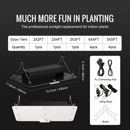 VEVOR LED Growth Illumination, 200W Full Spectrum Adjustable, Efficient Samsung 2B1B Diodes Light for Indoor Seedling, Vegetation and Flowering in Greenhouses, Daisy Chain Compatible for 1.2x2.4/3x3 f