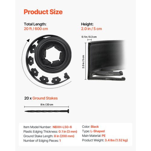 VEVOR Steel Landscape Edging, 4 Packs 40 x 6 in Rust-Resistant Metal Landscape Edging, Bendable Garden Edging Border, Heavy Duty Lawn Edging, Easy-to-Install, Flower Bed Yard Pathway Divider Black