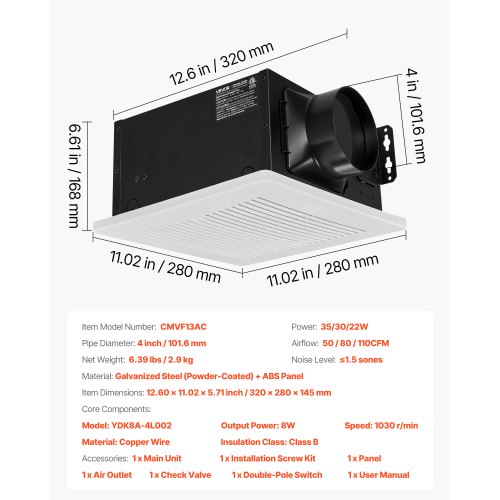 VEVOR RV Vent Fan, 14 inch RV Roof Vent Fan 12V, Powerful 10-Speed Reversible Fan with Remote Control, Built-in DC Motor, Power Top Lid,12 inch Fan Blade,Fits 14 x14 inch Roof Openings