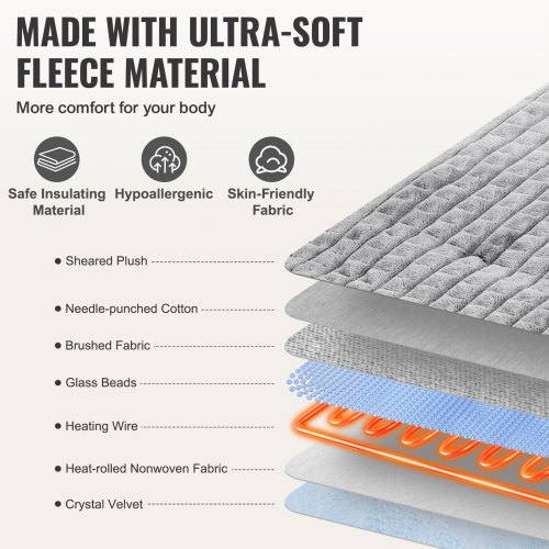VEVOR Massage Table Warmer Heating Pad, Professional SPA Massage Bed Warmer, Soft Fleece Heating Pad with 3-Level Timer, 8 Heat Settings, Overheat Protection for Massage Bed, Beauty Salon, 73.6" x 30"