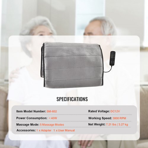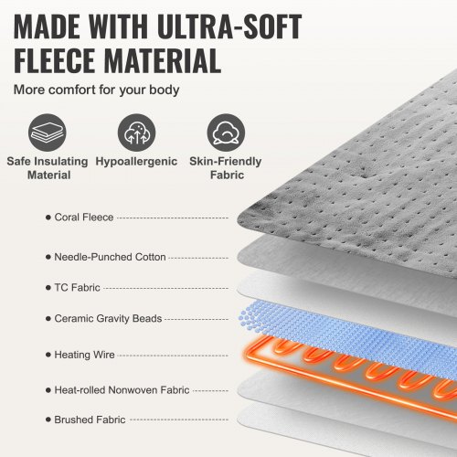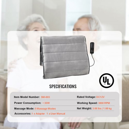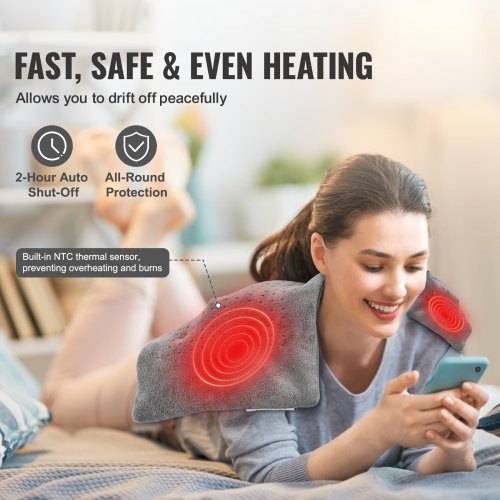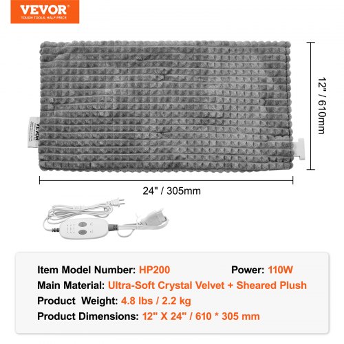 VEVOR Massaging Weighted Heating Pad, Electric Heating Pad with Massaging Vibrations, 2-hour Auto-Off, 3 Heat Settings and 3 Massage Modes, 12" x 24", 4.8 lbs, for Relaxing Back Neck Shoulder Abdomen
