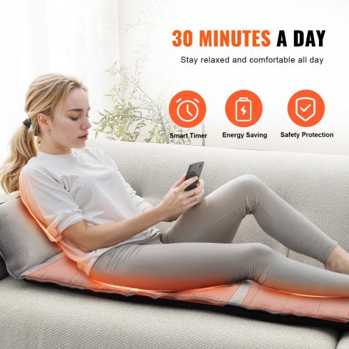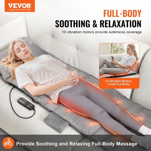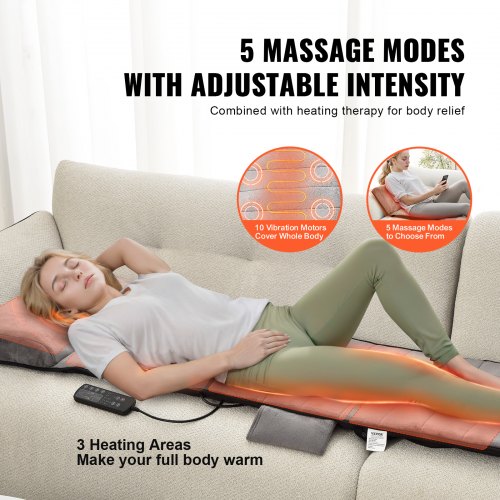 VEVOR Full-Body Massage Cushion with Heat, 10 Vibration Motor Massage Cushion Pad, Heating Vibrating Massage Mat & 5 Modes, 3 Intensities, 3 Heating Pads, Fatigue Relief Back Massager for Home Office