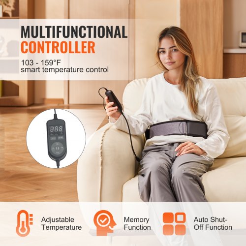 VEVOR Far Infrared Heating Pad, 10 Natural Jade & 10 Tourmaline Stone Heating Pad for Pain Relief, 103-159 ℉ Infrared Heating Belt with 3-Level Vibration Massage for Waist Lumbar Abdomen, Ideal Gift