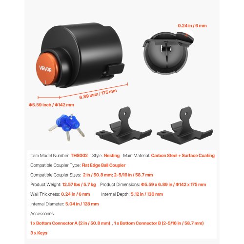 VEVOR Shackle Hitch Receiver, Fits 2" Receivers, 52900 lbs Breaking Strength, D Ring Shackle with Trailer Hitch Lock Pin, Heavy Duty Towing Accessories for Trucks, Jeeps, Off-Road Vehicle Recovery