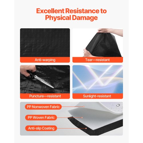 VEVOR 3FTx50FT Premium Weed Barrier Fabric Heavy Duty 5OZ, Woven Weed Control Fabric, High Permeability Good for Flower Bed, Geotextile Fabric for Underlayment, Polyethylene Ground Cover