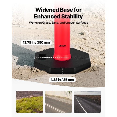 VEVOR 2 Pack Traffic Delineator Posts, 48 inches Traffic Safety Cones with Fillable Base and Reflective Strips, Heavy Duty Delineator Posts for Construction Site, Parking Lot, Crowd Control, Red