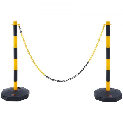 VEVOR 2 Pack Traffic Delineator Posts, 34 in Traffic Safety Cones with Weighted Base, Reflective Strips and Chain, Heavy Duty Delineator Posts for Construction Site, Parking Lot, Crowd Control, Red