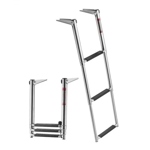 VEVOR Boat Ladder, 3 Steps, Stainless Steel Telescoping Folding Swim Deck Ladder for Rear Entry Inboard, Heavy Duty 600 lbs Capacity with Wide Anti-Slip Steps, for Outboards, Yacht, Pontoon Boats