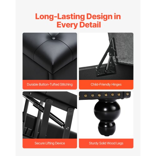 VEVOR Piano Bench, 29.5" x 14" x 19", Duet Keyboard Piano Chair with High-Density Padded Cushion, Storage Compartment for Music Books, Wooden Piano Bookcase Stool Seat, for Vanity and Living Room