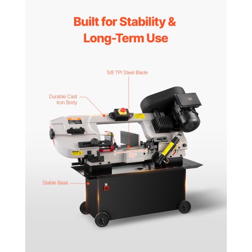 VEVOR 20V Portable Band Saw, 2.56-Inch Deep Cut, 360W Bandsaw with Brushless Motor, Cordless and Compact Portaband, Hang Hooks, 0-192 m/min Variable Speed, for Cutting Metal, Wood (Bare Tool Only)