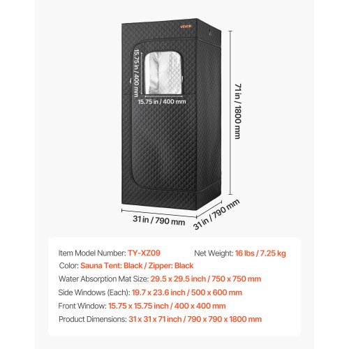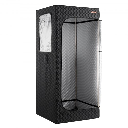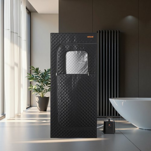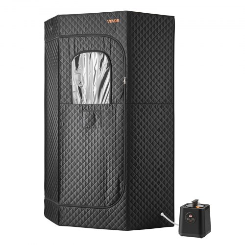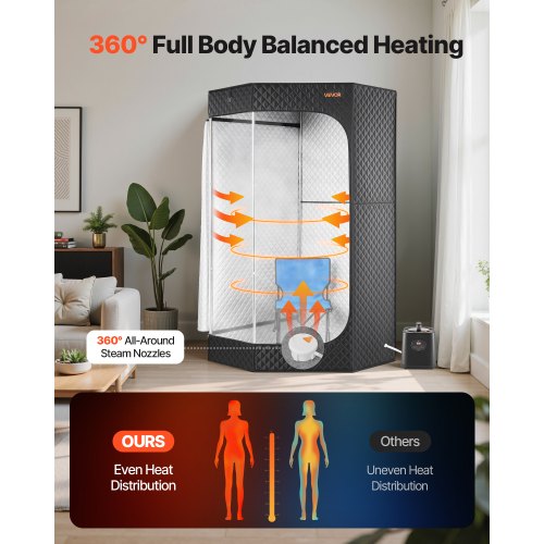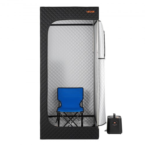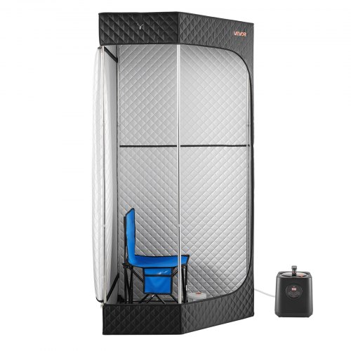 VEVOR Upgraded Portable Steam Sauna for Home, 1 Person Full Body Home Spa Tent with Steamer & 1 Foldable Chairs & Remote & Essential Oil Box,Heavy-Duty Stainless Steel Frame Sauna Box, (Black)