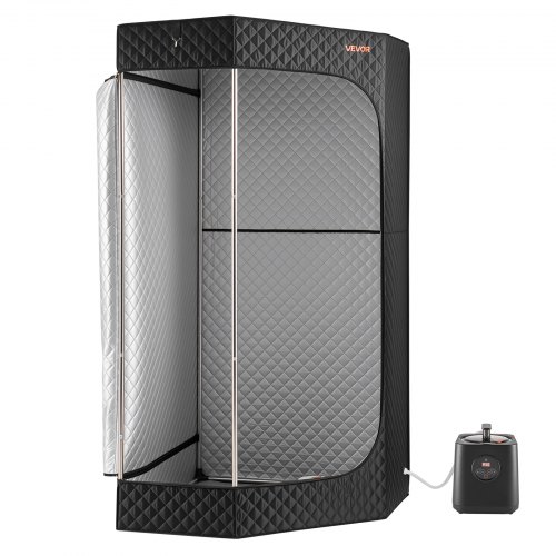 VEVOR Upgraded Portable Steam Sauna for Home, 1 Person Full Body Home Spa Tent with Steamer & 1 Foldable Chairs & Remote & Essential Oil Box,Heavy-Duty Stainless Steel Sauna Box, (Black,Pentagon)
