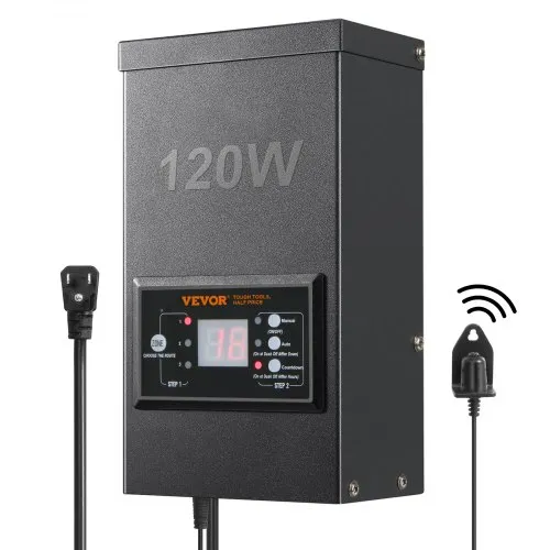 VEVOR 120W Low Voltage Landscape Transformer with Timer and Photocell Sensor, Waterproof Landscape Lighting Transformer, 120V AC to 12V AC for Outdoor, Spotlight, Pathway Light, Pool light, ETL