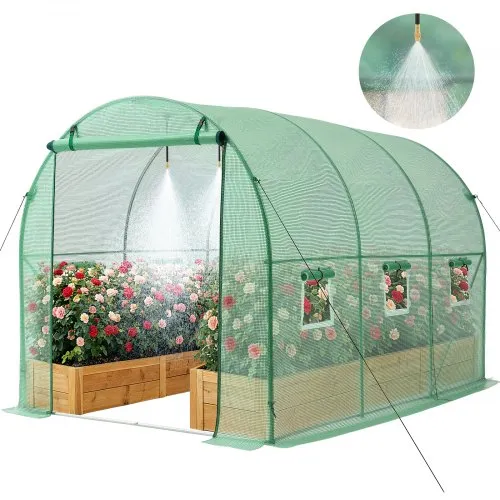 VEVOR Walk-in Tunnel Greenhouse, 9.6x6.4x6.2 ft Hoop House Greenhouse Tunnel, Plant Hot House with Galvanized Steel Frame, White PE Cover, Roll-up Zipper Door and 6 Windows for Outdoor