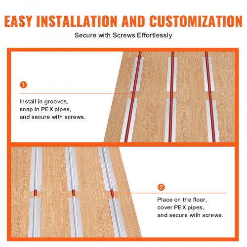 VEVOR PEX Heat Transfer Plates 4 ft, Radiant Heat Plates for 3/4" PEX Pipe, Durable Aluminum & Easy Trimming and Install Underfloor Heat Tubing Plates, Perfect for Wooden Floors (200pcs)