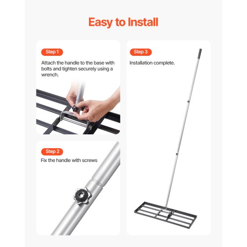 VEVOR Updated Lawn Leveling Rake with Roller, 48'' x 10" Stainless Steel Lawn Leveler with 83.9'' Adjustable Handle, Heavy Duty Yard Leveling Rake, Effort Saving Lawn Leveling Tool for Yard Golf Court