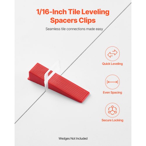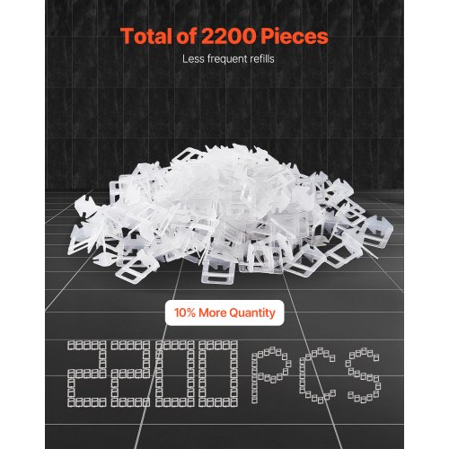 VEVOR Tile Leveling System Clips, 2200-Piece DIY Tile Leveler Spacers, 1/16"(1.5 mm) Tile Leveler Clips, Tile Leveling System Tile Installation Tools for Professional Ceramic Tile, Stone Installation