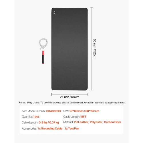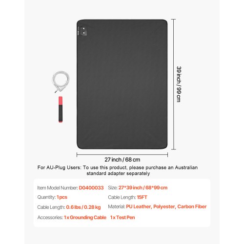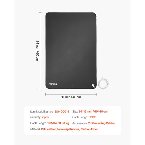 VEVOR Grounding Mat, 24 x 16 in Anti-Slip PU Leather Earthing Mat (2 Packs), with 15 ft Grounding Cord, Grounding Pad for Feet, Boost Energy, Improve Sleep, Reduce Anxiety at Home Office or Work