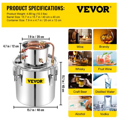 VEVOR Alcohol Still 3Gal/21L, Alcohol Distiller with Circulating Pump, Alcohol Still Copper Tube, Whiskey Distilling Kit with Build-In Thermometer, Whiskey Making Kit for DIY Alcohol, Stainless Steel