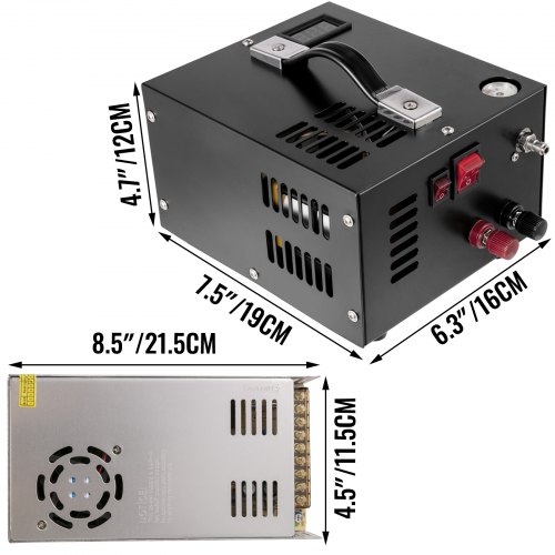 VEVOR PCP Air Compressor, 4500PSI/30Mpa Paintball Air Compressor, DC12V/AC110V Portable PCP Air Compressor, Manual-Stop PCP Air Rifle Pump, High Pressure Paintball and Scuba Tank Compressor Pump