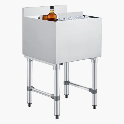 VEVOR Commercial Ice Bin, 61.6 L Underbar Ice Bin, 24 x 24.2 x 37 in Stainless Steel Ice Chest with Sliding Lid, Bottle Holders, and Adjustable Bullet Feet, Cocktail Unit for Bar, Restaurant & Pub