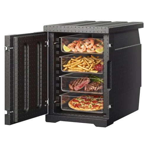 VEVOR Insulated Food Pan Carrier, 82 Qt Hot Box for Catering, LLDPE Food Box Carrier with Double Buckles, Front Loading Food Warmer with Handles, Stackable End Loader for Restaurant, Canteen, etc. Bla