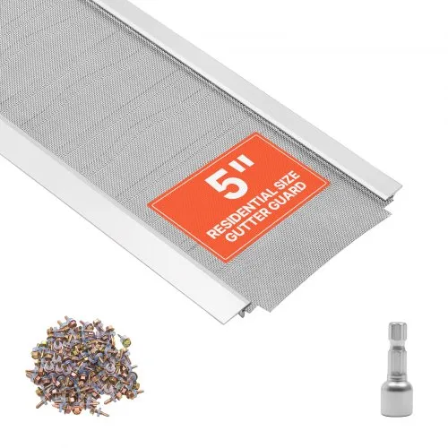 VEVOR Gutter Guard, 5 in Aluminum Gutter Cover with Stainless Steel Micro Mesh, Heavy-Duty 100ft Length, 0.04in Thick, Leaf Guard for Debris and Pine Needles, Easy DIY Install, Screws Included, 20 PCS