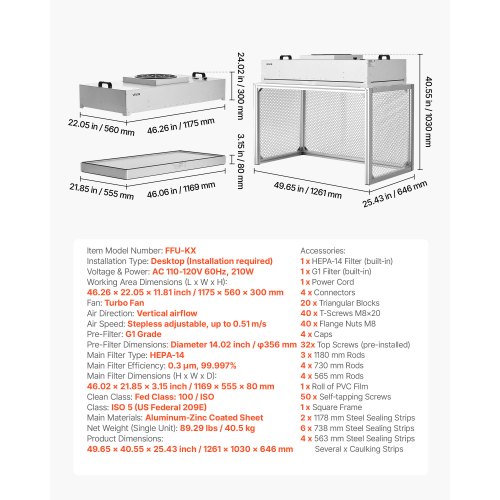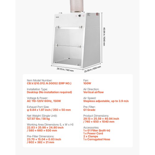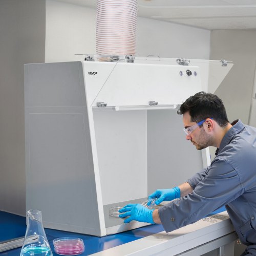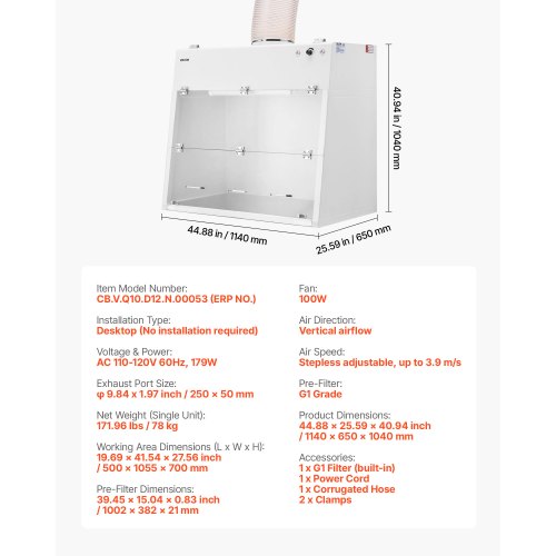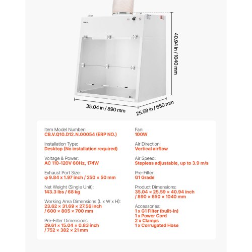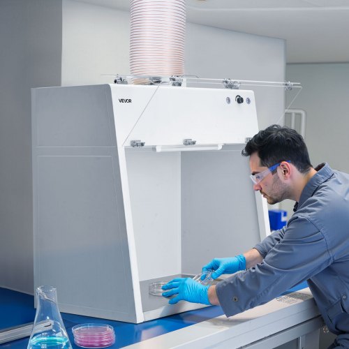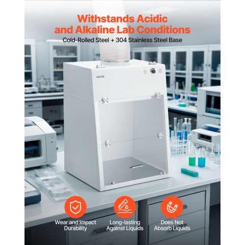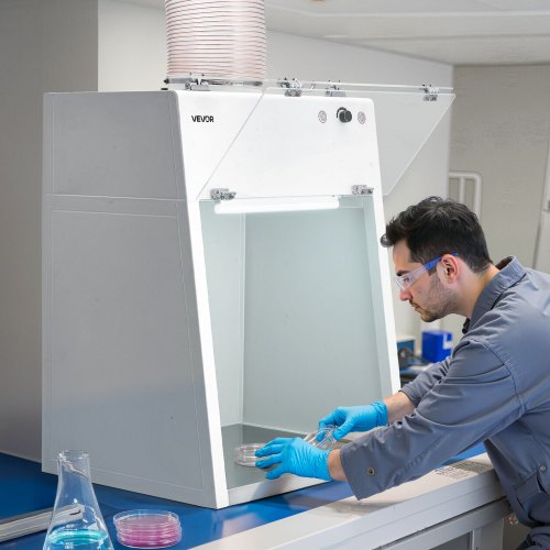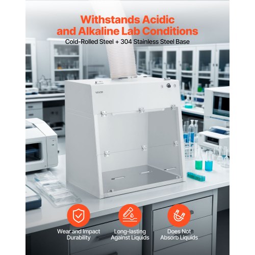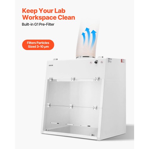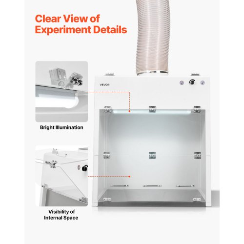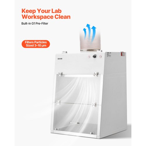 VEVOR Ducted Fume Hood, 22.83 x 25.98 x 24.80 inch Working Area, Lab Fume Hood with LED Light and G1 Pre-Filter, Exhaust Equipment for Laboratory Fume Control and Pharmaceutical Compounding, White