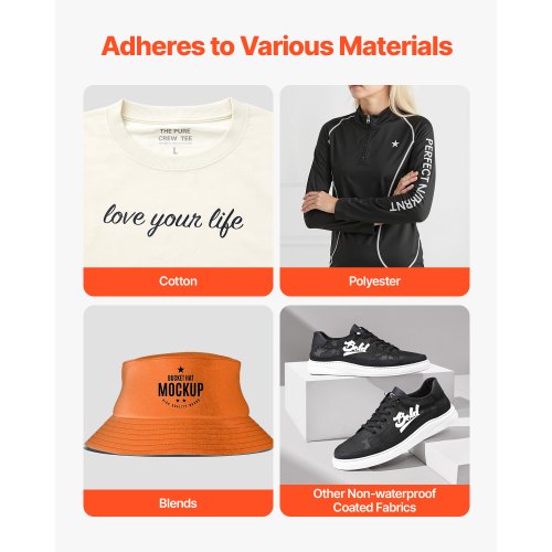 VEVOR Heat Transfer Vinyl, 12 in x 25 ft, Glossy White HTV Iron on Vinyl Roll, Easy to Cut and Weed, Strong Adhesion, Compatible with Cutting Machines, for Various Materials, T-shirts, Pillows, Hats