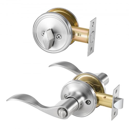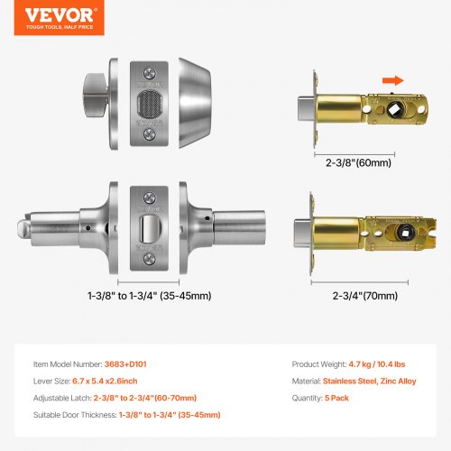 VEVOR Entry Door Locksets with Deadbolt, 5 Pack Satin Nickel Entry Lever and Single Cylinder Deadbolt, Keyed Alike Combo Pack, Fit for 1-3/8" to 1-3/4" Door Thickness, for Entrance and Front Door