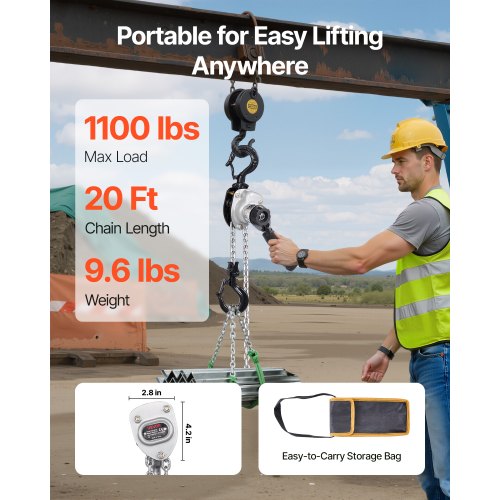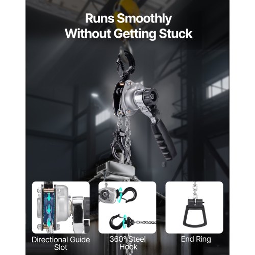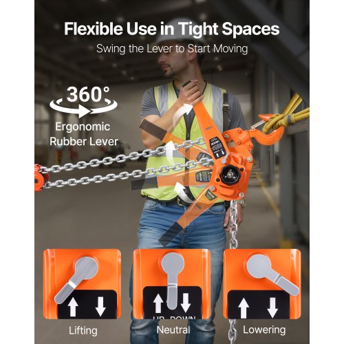 VEVOR Manual Lever Chain Hoist, 1T 2200LBS Capacity Heavy Duty Come Along, 10FT Lift G80 Alloy Steel Chain With Dual Pawl Mechanical Brake,360°Rotating Hooks, for Warehouse Construction Garage