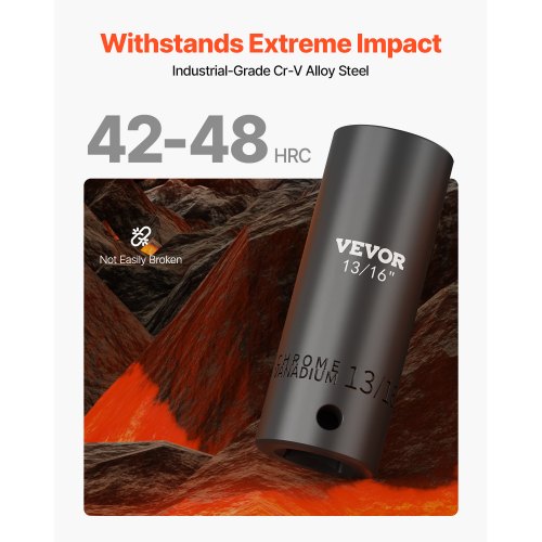 VEVOR Impact Socket Set, 1/2" 19 Piece Impact Sockets, Deep Socket, 6-Point Sockets, 1/2 Inches Drive Socket Set Impact 3/8 inch - 1-1/2 inch, Cr-V Rugged Construction, with a Storage Cage