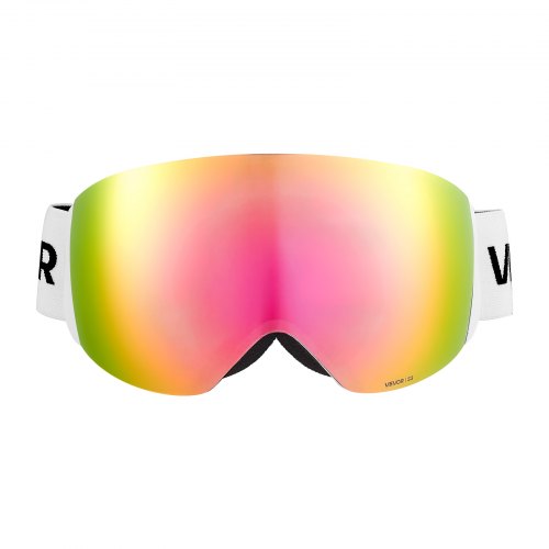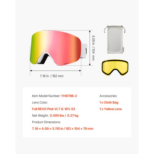 VEVOR Frameless Ski Goggles, Magnet Cylindrical Lens with Pink Revo Coating, OTG Anti fog Snow Goggles for Men Women Youth, TPU Frame & Ventilation Structure, Fit for Skiing, Skating, Snowboarding