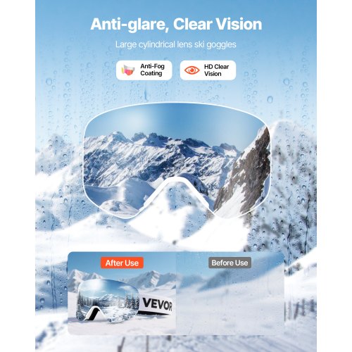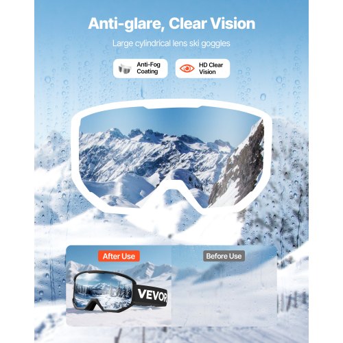 VEVOR Ski Goggles, Cylindrical Lens with Silver Mirror Revo Coating, OTG Anti fog Snow Goggles for Men Women Youth, TPU Frame & Ventilation Structure, Suitable for Skiing, Skating, Snowboarding, Cycling