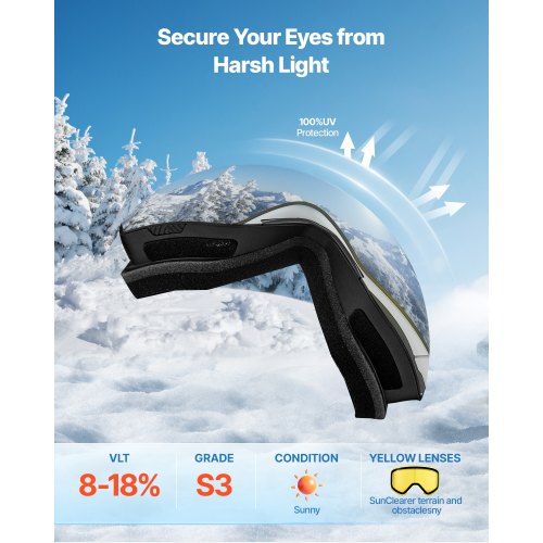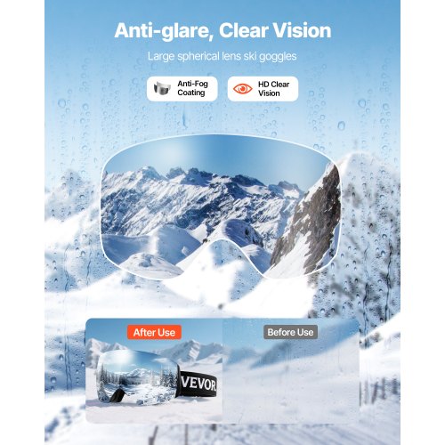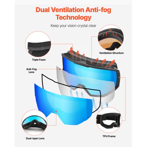 VEVOR Ski Goggles, Cylindrical Lens with Orange Revo Coating, OTG Anti fog Snow Goggles for Men Women Youth, TPU Frame & Ventilation Structure, Suitable for Skiing, Skating, Snowboarding, Cycling