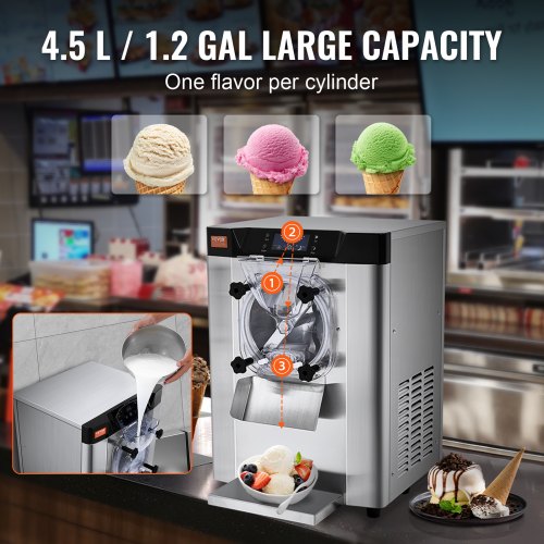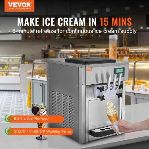 VEVOR Commercial Ice Cream Machine, 21-31 L/H Yield, 1800W 3-Flavor Freestanding Soft Serve Ice Cream Maker, 2 x 5.5L Stainless Steel Cylinder, LED Panel Auto Clean Pre-cooling, for Restaurant Bars